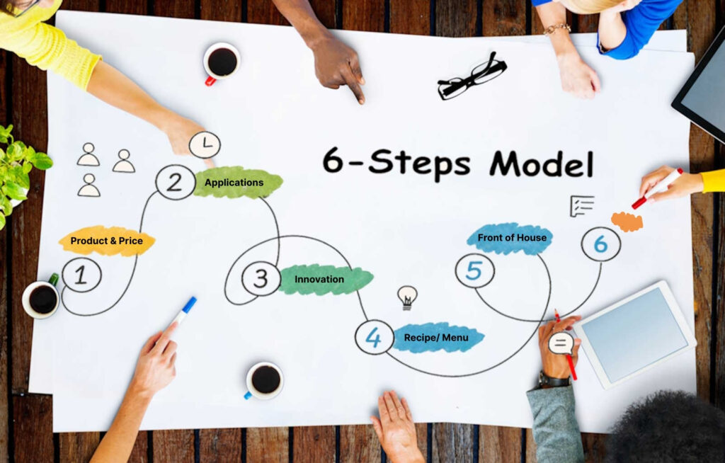 Actio’s integrated Marketing & Sales approach follows a distinct, 6-Step proven model for driving success. Supplier-centric activities, including i) Right Product/Price, ii) Detailing how products work, and iii) Channel-Led Product Innovation, are combined with three customer-centric focus areas: iv) Recipe/Menu Ideation, v) Front of House (FOH) Value-Adds, and vi) Back of House (BOH) Efficiency Drivers.
